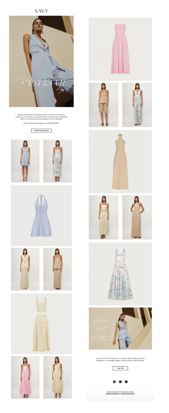 Alongside strategic planning, I manage the full creative and technical execution of email marketing. This includes template design, copywriting, segmentation, automation setup, A/B testing and ongoing optimisation. I design emails with a refined, editorial aesthetic while grounding each send in clear objectives — whether driving conversions, educating customers or strengthening brand affinity. My experience across multiple platforms allows me to build seamless, scalable systems that support sustainable growth and consistent revenue.
